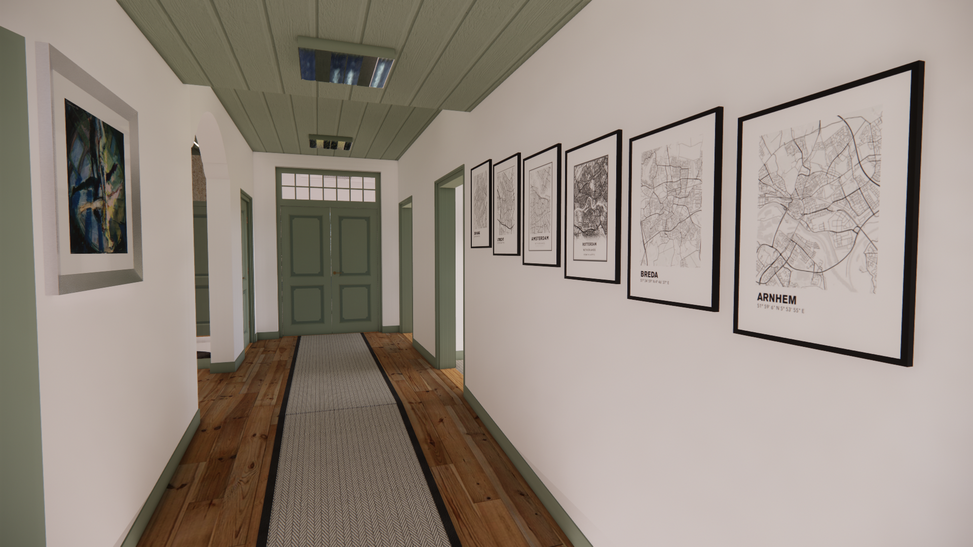 Bij rijksmonumenten is het belangrijk rekening te houden met historische en culturele waarden. Zo hebben we bij deze opdracht de ‘oude’ groene kleur op de plafonds en deuren behouden en er toch meer eigentijdse en moderne ruimtes van weten te maken…